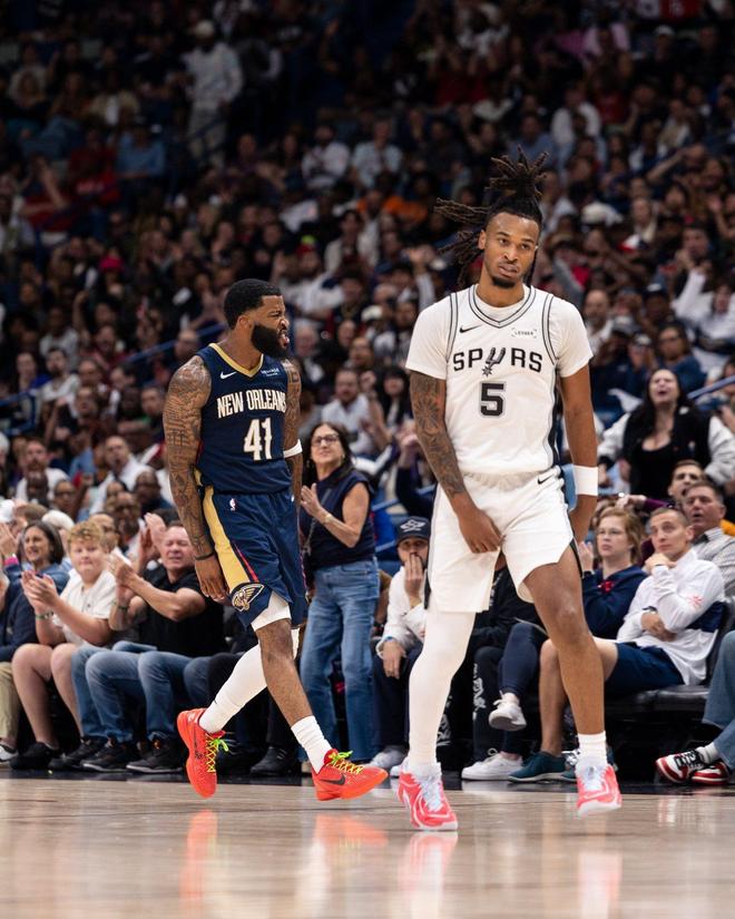 NBA常规赛继续进行,马刺奔赴客场与鹈鹕展开对决。文班亚马在赛季首战狂轰40+15,实现了强势暴走,甚至打爆了对位的独行侠球星安东尼戴维斯。此役,圣安东尼奥的首发五虎是文班亚马、巴恩斯、卡斯尔、尚帕尼与瓦塞尔,福克斯、索汉、奥利尼克、沃特斯伤停。锡安威廉森休赛期成功减重,新奥尔良还得到了卢尼、乔丹普尔、小乔丹3大悍将,实力不容低估。该场比赛,新奥尔良的首发五虎是锡安威廉森、普尔、琼斯、墨菲、萨迪克贝,卢尼、穆雷伤停。两大劲旅,在此役上演了精彩交锋。文班亚马与锡安两大超级新星的对决,是此战的最大看点。